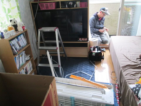 さて、本日もエアコン工事に励んでおります!日置市にて、ネットで購入された新品エアコン2台の取り付け工事をご依頼いただきました。